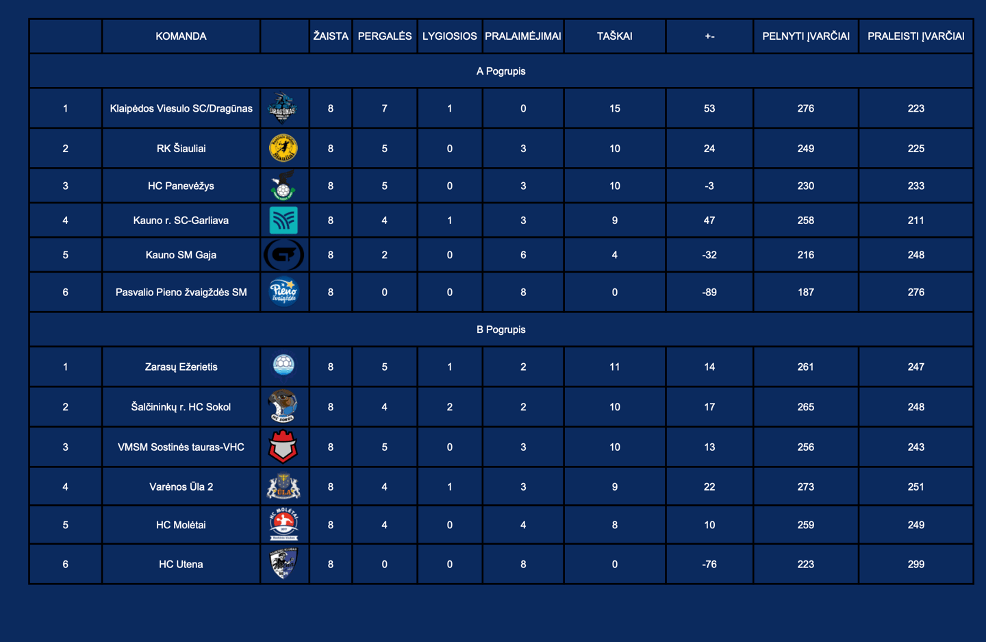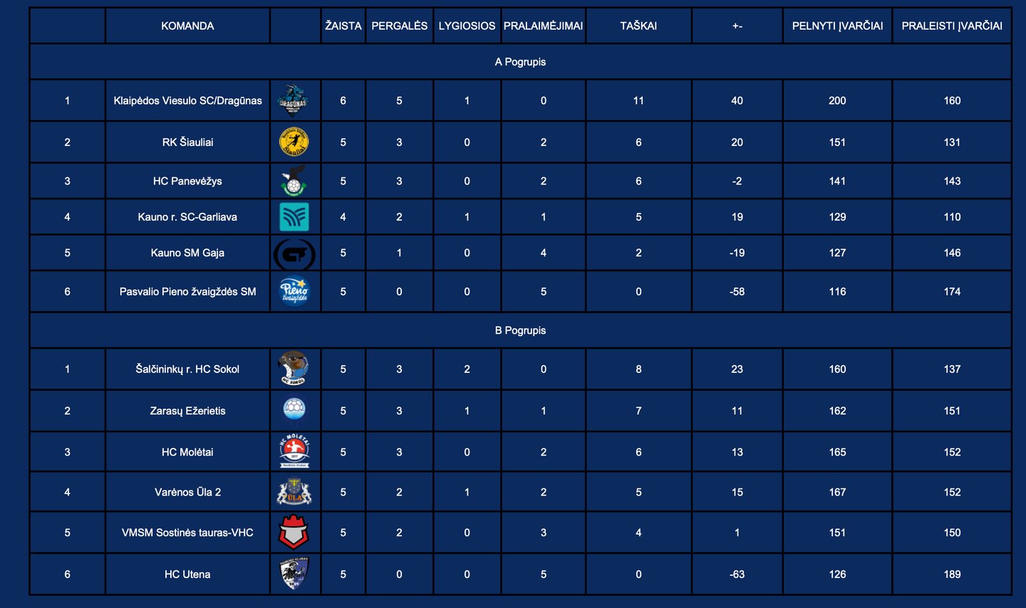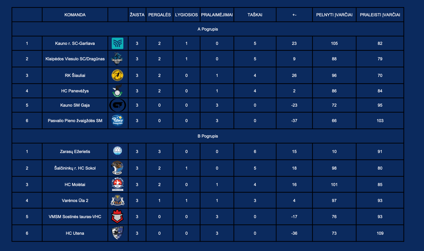 PIRMOS LYGOS 2025-2026 M. TURNYRINĖ LENTELĖ