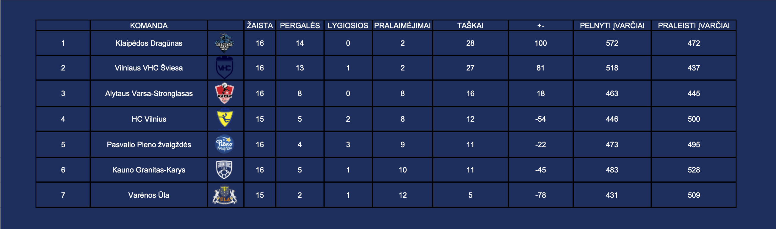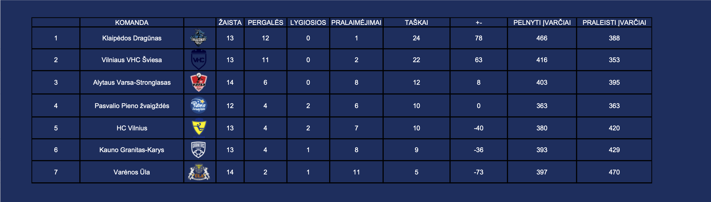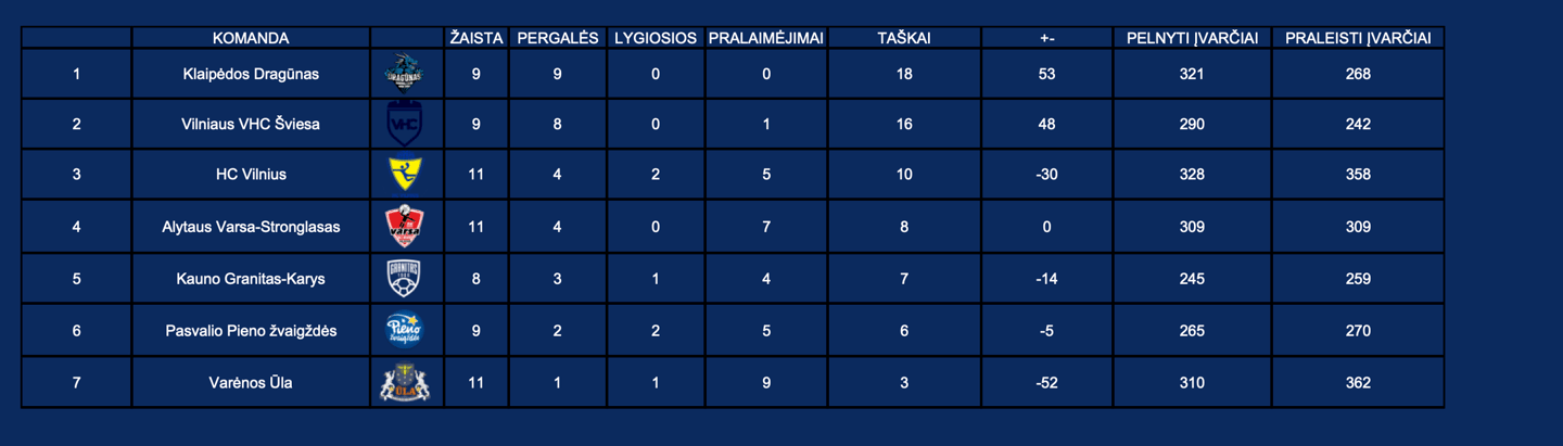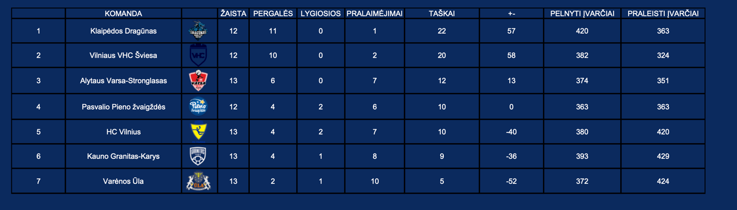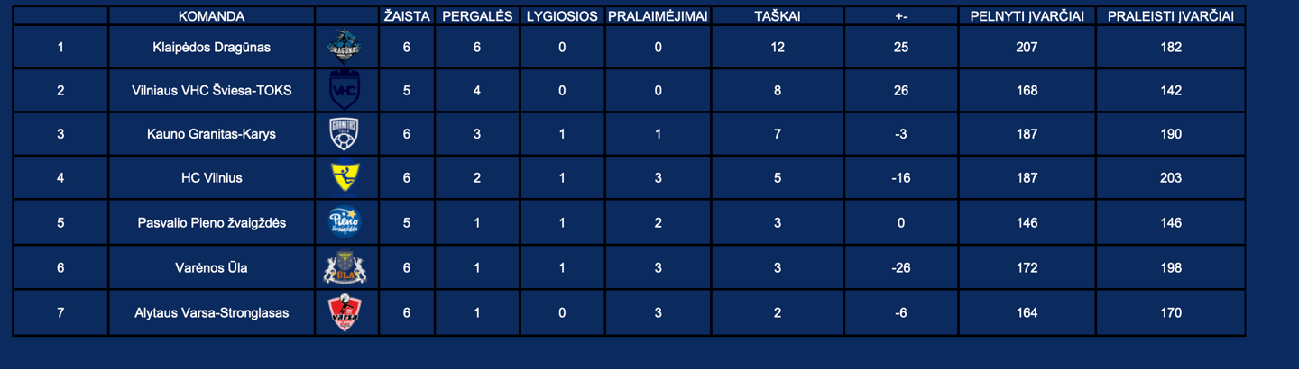 LRL turnyrinė lentelė