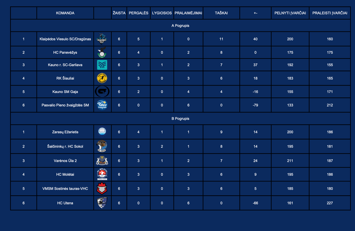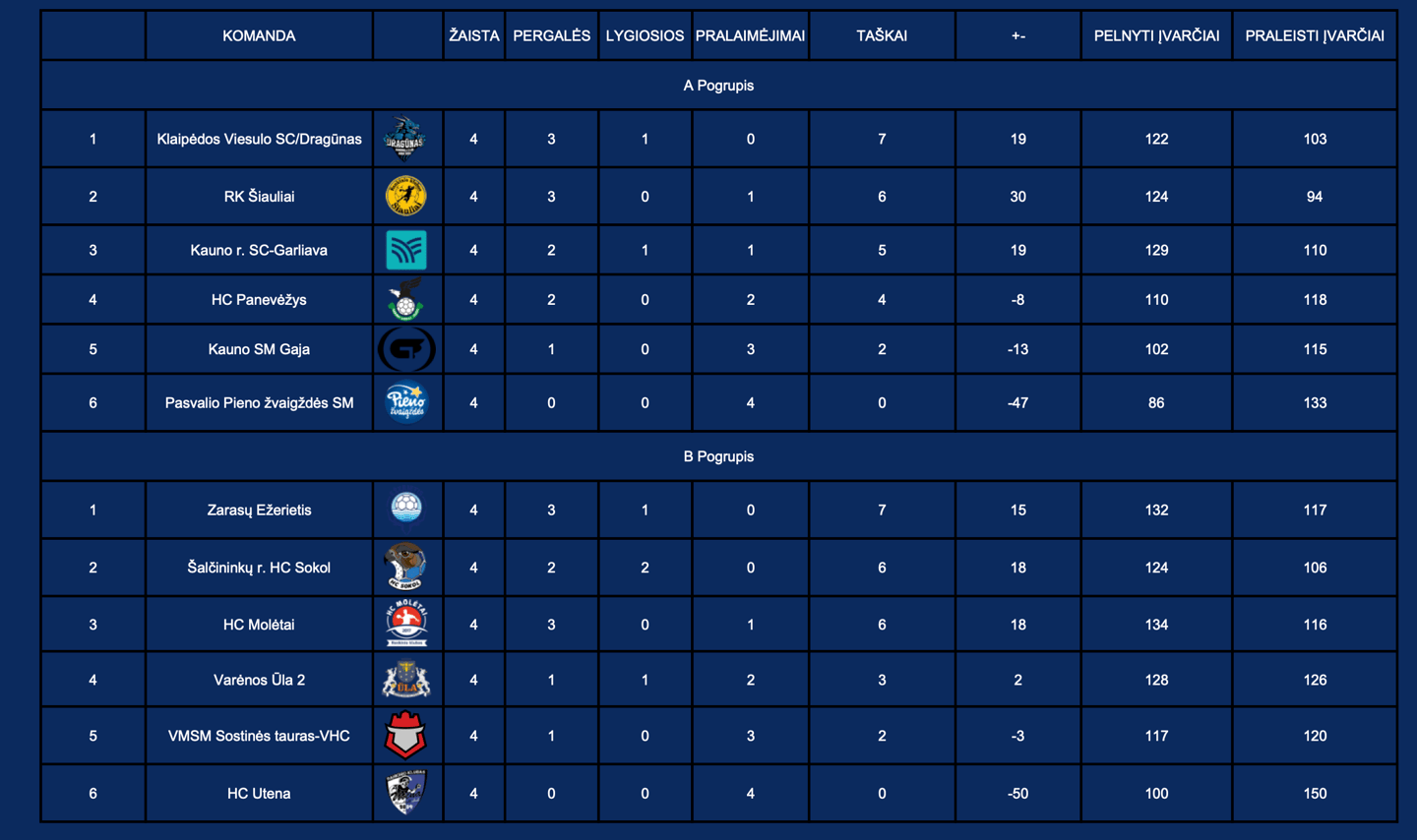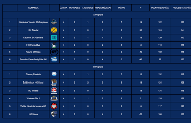PIRMOS LYGOS 2025-2026 M. TURNYRINĖ LENTELĖ