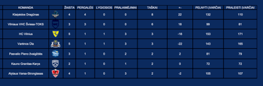 BHL turnyrinė lentelė